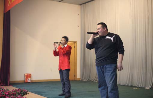 ??? 本次聯歡會,從節(jié)目數量到質量都比往年有了較大提高。自元月中旬發(fā)出通知至2月初共接受報名40余人次,節(jié)目形式也增添了花樣,除了往年較多的歌曲類節(jié)目外,今年還增加了大型歌伴舞、小品、三句半等。演員們的精彩表演使得本次聯歡會高潮迭起,掌聲和歡呼聲此起彼伏。由陳潔領銜表演的舞蹈《月亮之上》和《我和我的祖國》贏得了陣陣掌聲,水平堪比專業(yè)演員;侯超演唱的歌曲《熱情的沙漠》盡顯明星大腕之勢;小品《超級明星》把聯歡會推向了高潮,張繼傳和趙心剛的表演夸張力相當厲害,看后才知道 “陽仔”已成為過去,“傳仔”將是今年的流行趨勢。由領導參與的互動游戲依然是聯歡會的保留節(jié)目,領導與員工互動,一下子拉近了相互的距離,增加了企業(yè)的凝聚力。劉繼友的獨唱《今天》等節(jié)目同樣表現不俗。