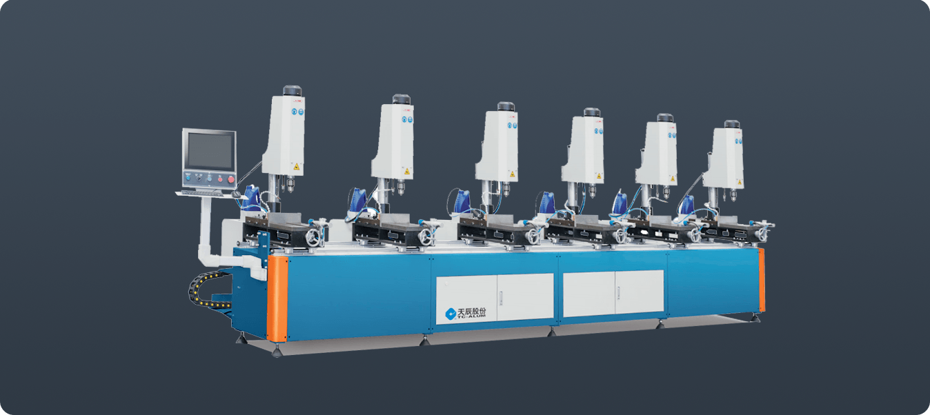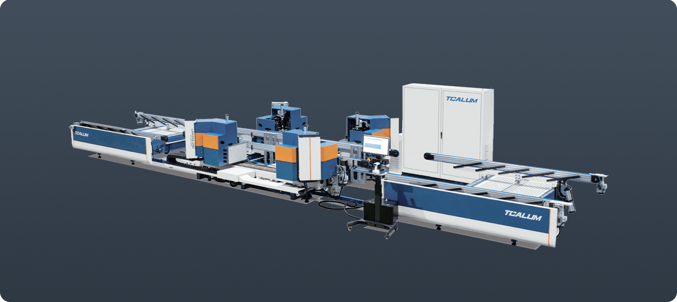 行業(yè)領(lǐng)先的全伺服智能組角生產(chǎn)線,可高效智能的完成各類窗體的流水線形式數(shù)控四頭同步組角加工。設(shè)備配置五十組伺服軸,實(shí)現(xiàn)刀具的全數(shù)控調(diào)整。